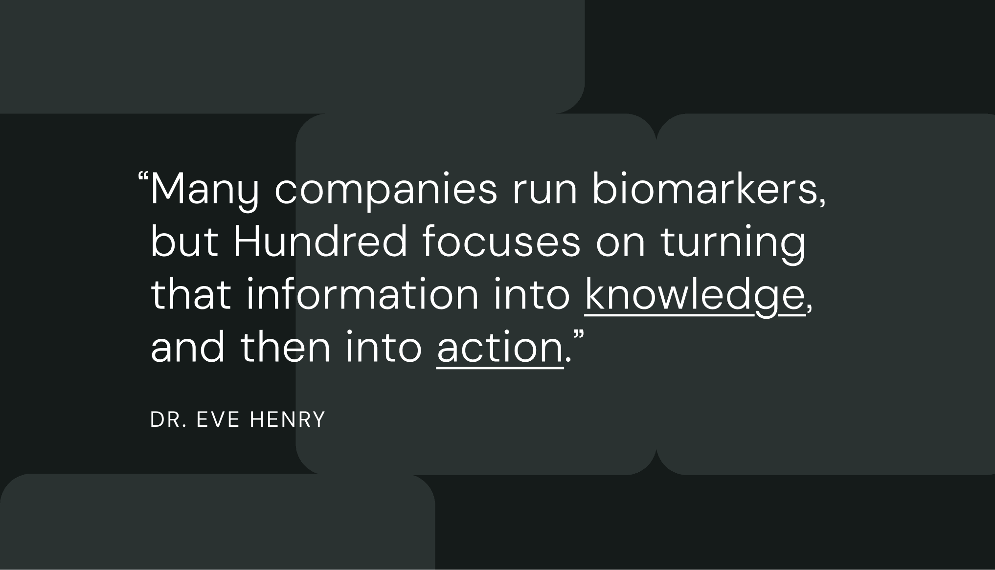 I've seen firsthand the power of understanding your biomarkers. When you know what's happening with your body, you can create educated action plans that will actually work for you. Many companies run biomarkers, but I was incredibly impressed by how Hundred focused on turning that information into knowledge — and then into action.